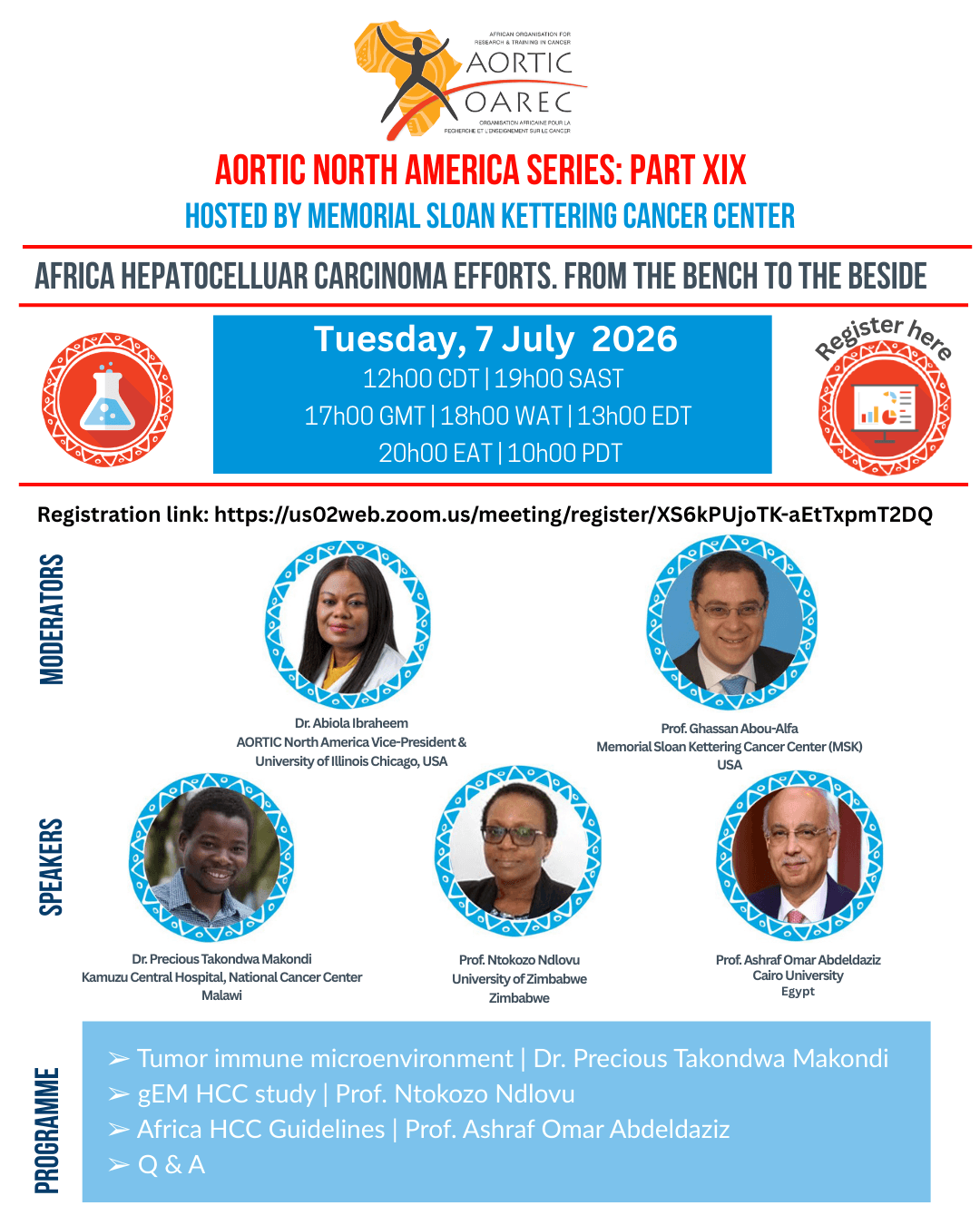 AORTIC North America Webinar Series – Part 19 (hosted by Memorial Sloan Kettering Cancer Center) 7 July 2026 19h00 SAST Virtual online